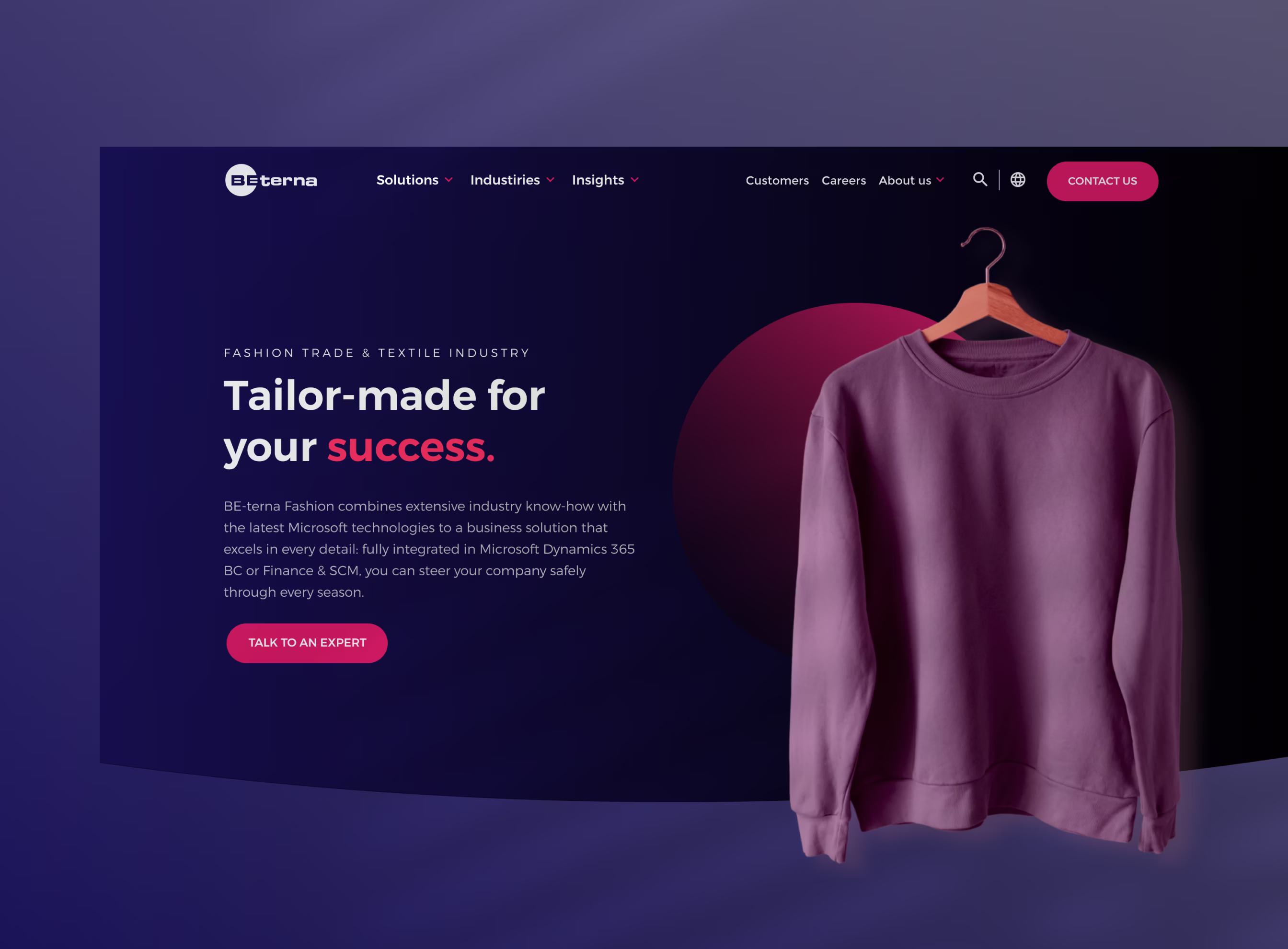 To address these challenges, I designed and delivered a new website that authentically reflects Beterna’s expanded brand identity while prioritizing usability and clarity. The site structure was strategically organized to guide users through the company’s value proposition, offerings, and expertise, with an emphasis on supporting the sales process by showcasing relevant solutions and industries clearly and intuitively. The user experience was redesigned to simplify navigation across an extensive content landscape, ensuring that visitors can efficiently find what they need without feeling overwhelmed. The visual design was created to feel modern and future-proof — striking a balance between sophistication and simplicity so that it remains fresh and adaptable over time.