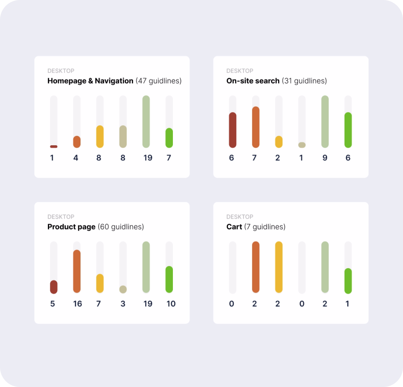 I led an extensive UX audit grounded in Baymard Institute heuristic analysis, systematically reviewing the experience across desktop and mobile. This uncovered multiple high-impact areas for improvement, allowing us to prioritize changes that directly affected usability and conversion. A mobile-first approach ensured the core journeys were optimized for the most constrained context first. Based on these insights, I designed a reusable, scalable design system that aligned business needs with user expectations, significantly reducing complexity across the interface.